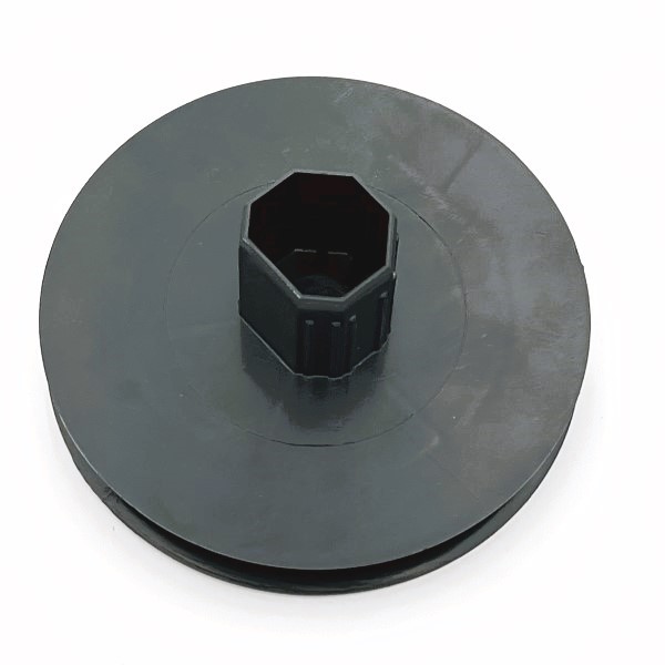 Poulie de 140 mm de diamètre pour axe octogonal de 40mm, roulement fourni (Ø28mm extérieur, Ø12mm intérieur), adaptée aux sangles de 14mm.